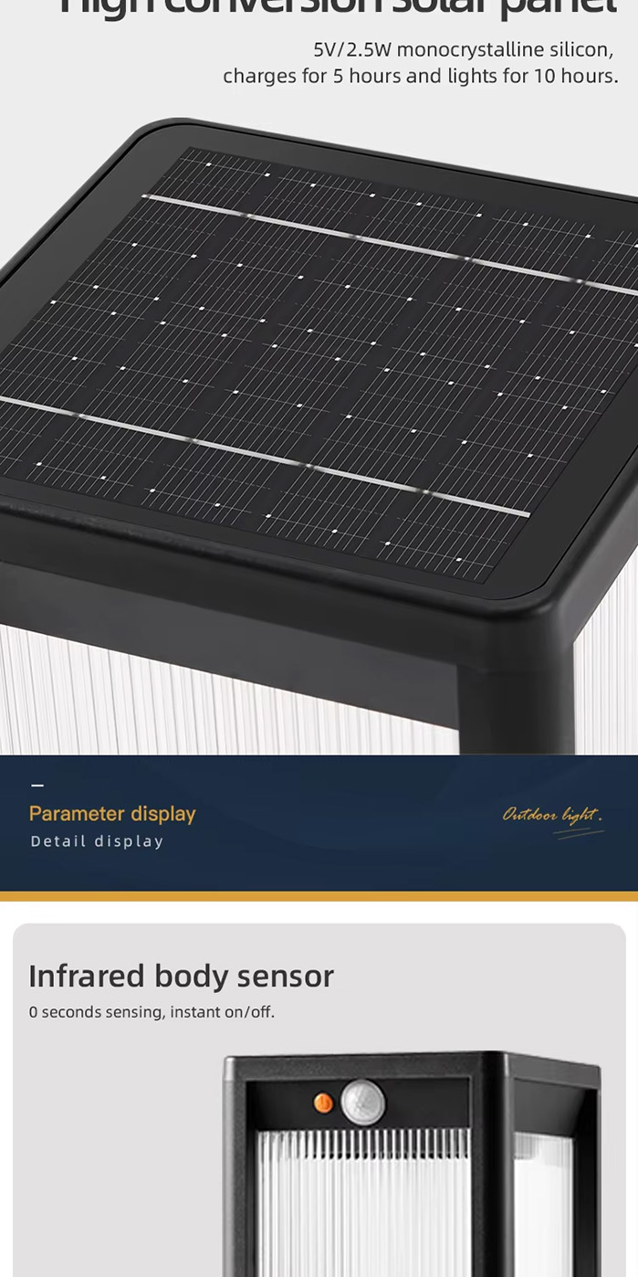 | Usage | Garden | Voltage | Monocrystalline silicon 5V/2.5W |
