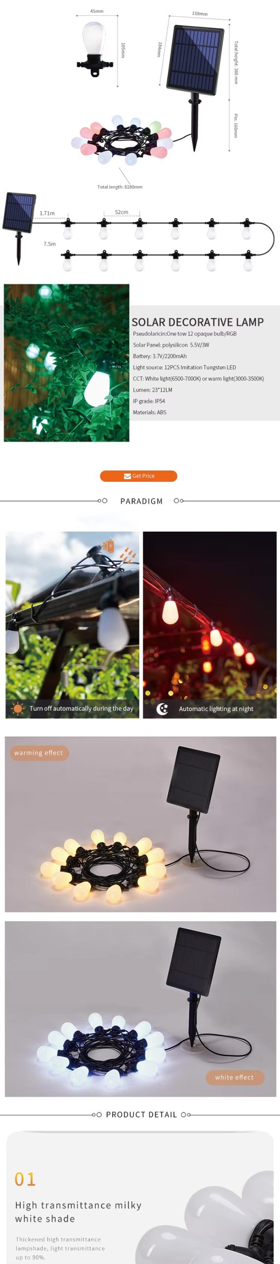 | Working Temperature(℃) | -15-45 | Product name | Solar Led Holiday Light |