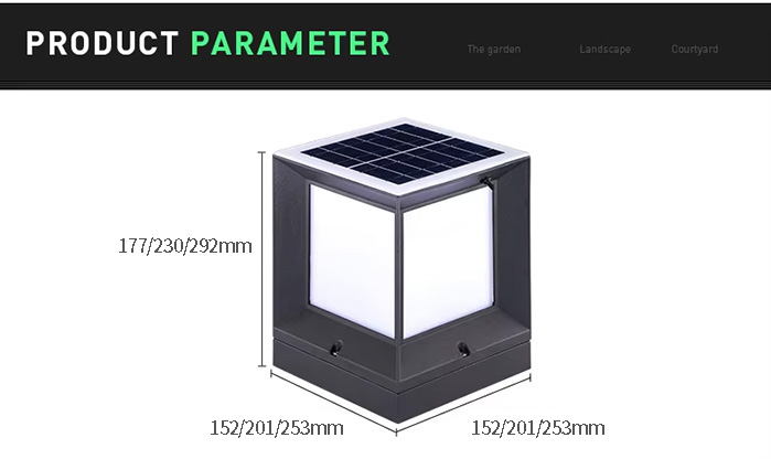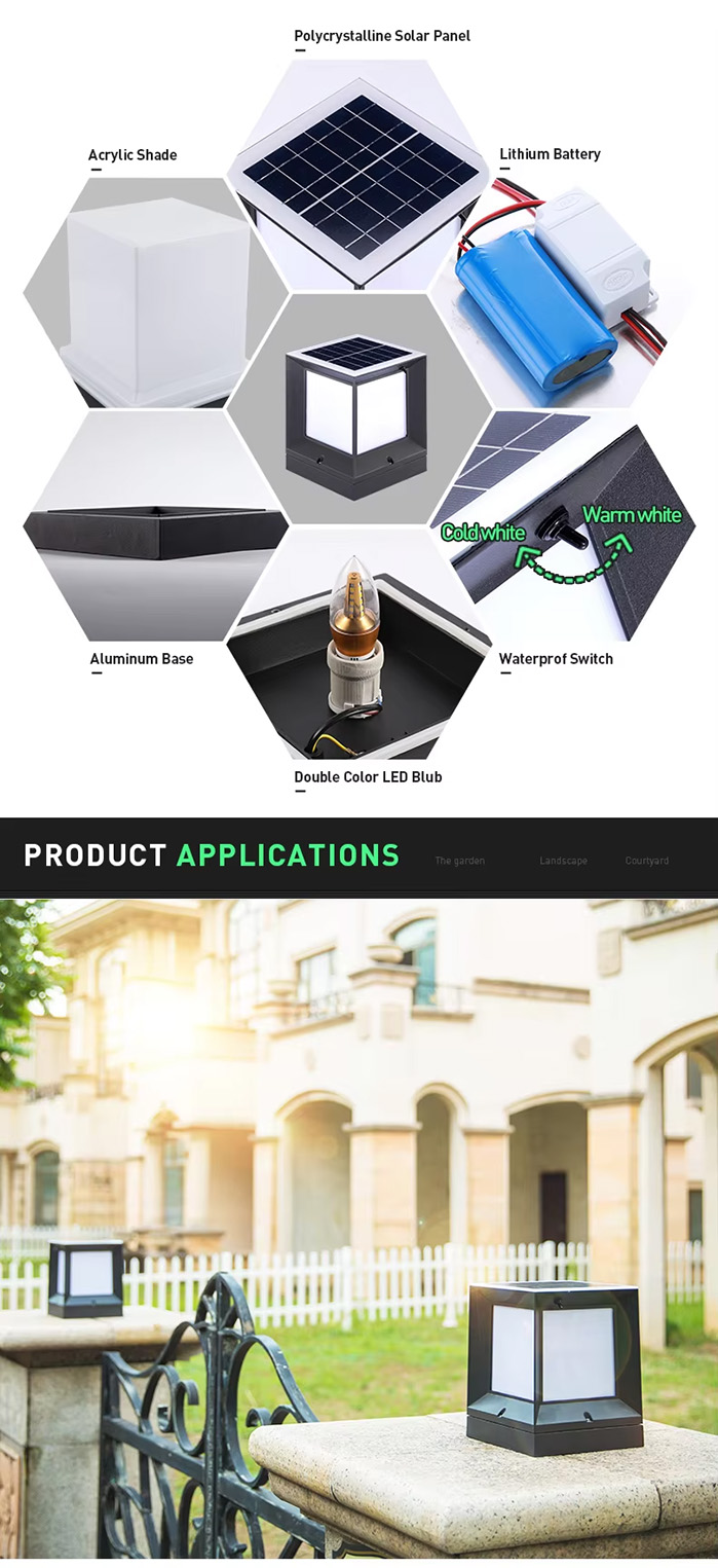 | Application | Garden gate column post | Function | Light control, switch to white warm double light color |